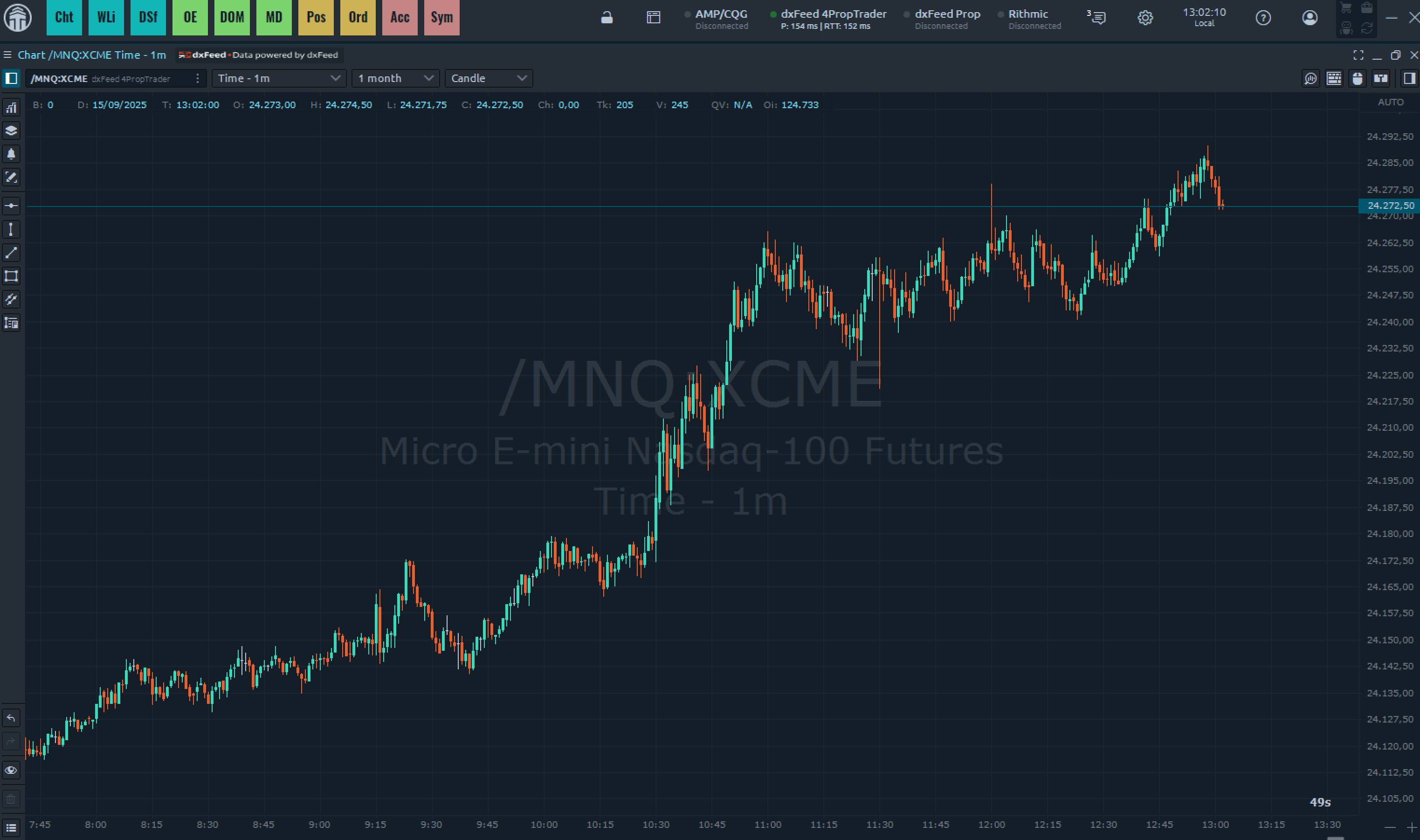 Depois de conectado, selecione os contratos futuros que deseja acessar (por exemplo: CME, CBOT, NYMEX, COMEX) e ajuste suas watchlists ou painéis de negociação conforme necessário.
